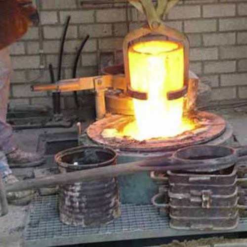 El contenedor, conteniendo el bronce fundido a aproximadamente 1200