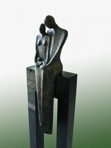 Una escultura acerca de la apasionante sorpresa del reconocimiento mutuo que sigue al nacimiento, la maravilla del lazo de la sangre.